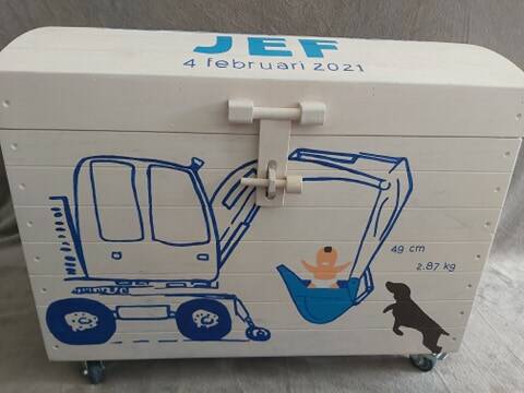 Deze geboortekist is gebaseerd op het geboortekaatje.