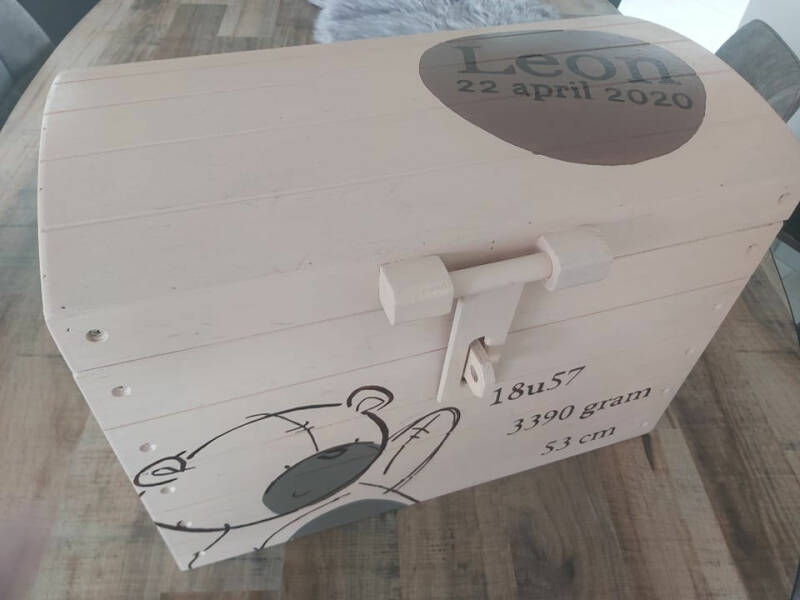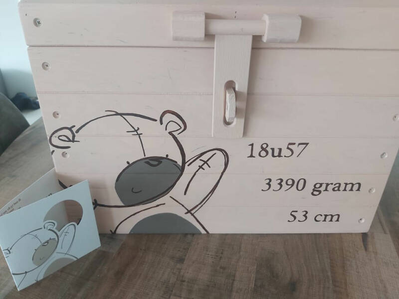Deze geboortekist is gebaseerd op het geboortekaartje.