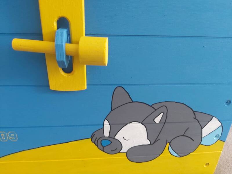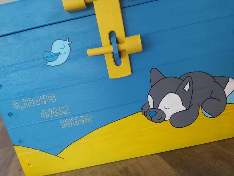 Deze geboortekist is gebaseerd op de geboorteknuffel en op een eerder bestelde geboortekist van deze klant.