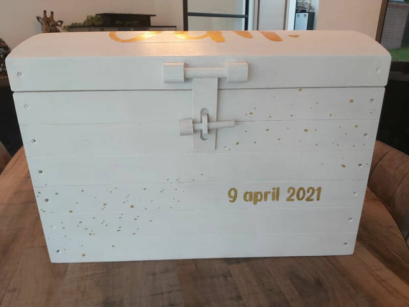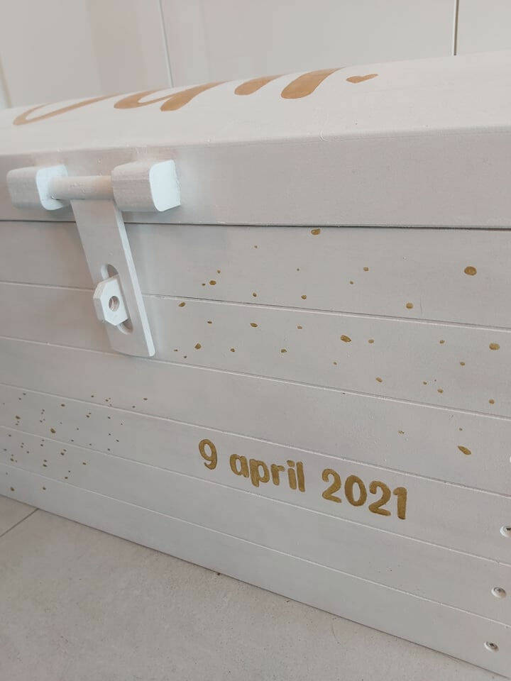 Deze geboortekist is gebaseerd op het geboortekaartje.