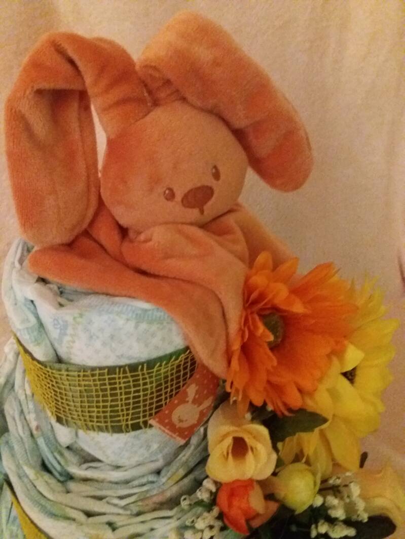 Er kan altijd een knuffel toegevoegd worden aan de pampertaart.