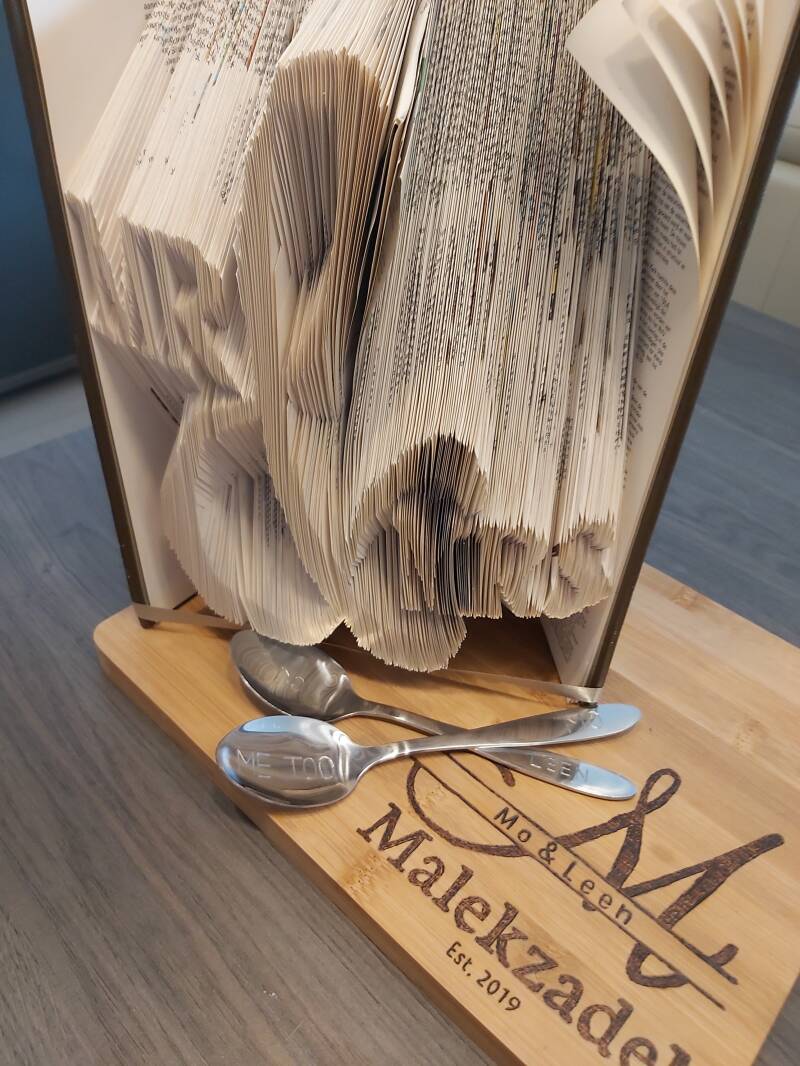 Nadien werd deze ingepakt in cellofaan verpakking en afgewerkt met aangepast lint.